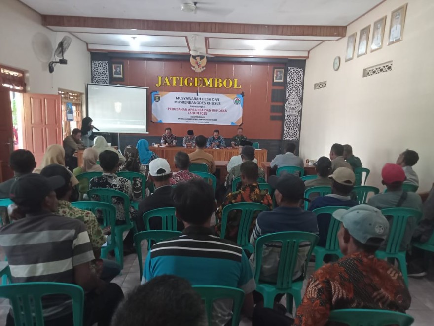 Jatigembol, 16 Oktober 2025 — Pemerintah Desa Jatigembol, Kecamatan Kedunggalar, menggelar Musyawarah Desa (Musdes) dan Musyawarah Perencanaan Pembangunan Desa Khusus (Musrenbangsus) dalam rangka membahas dan menyepakati perubahan Anggaran Pendapatan dan Belanja Desa (APBDes) serta Rencana Kerja Pemerintah Desa (RKPDes) Tahun Anggaran 2025. Kegiatan ini dilaksanakan di Aula Kantor Desa Jatigembol pada Kamis, 16 Oktober 2025.